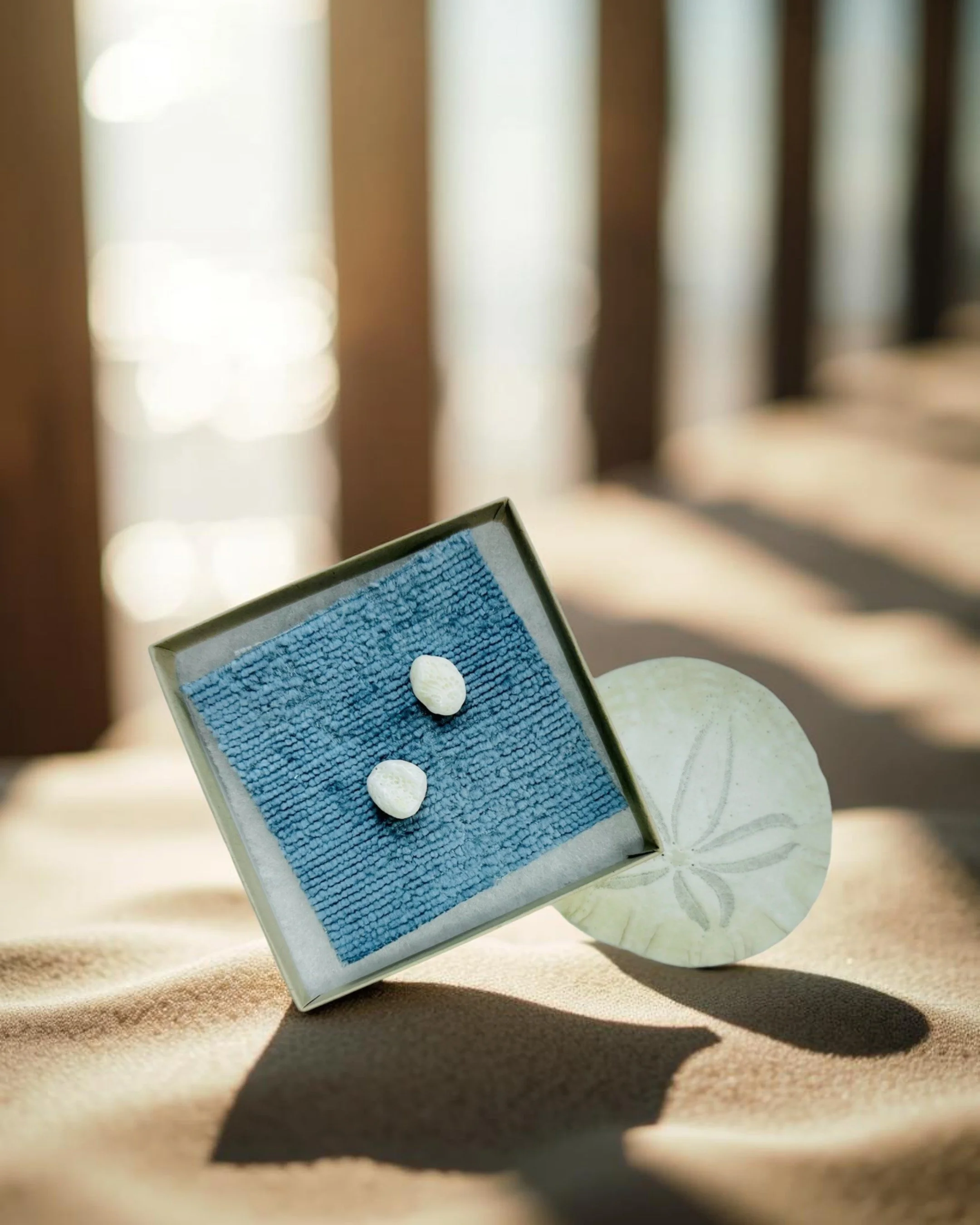 A mindful moment in every match. These shell and sea-glass earrings are born from quiet beach walks. They are small souvenirs of presence and connection. The first pairs comes from Los Barriles, Baja Mexico Sur, where three generations of women gathered by the sea in 2020.